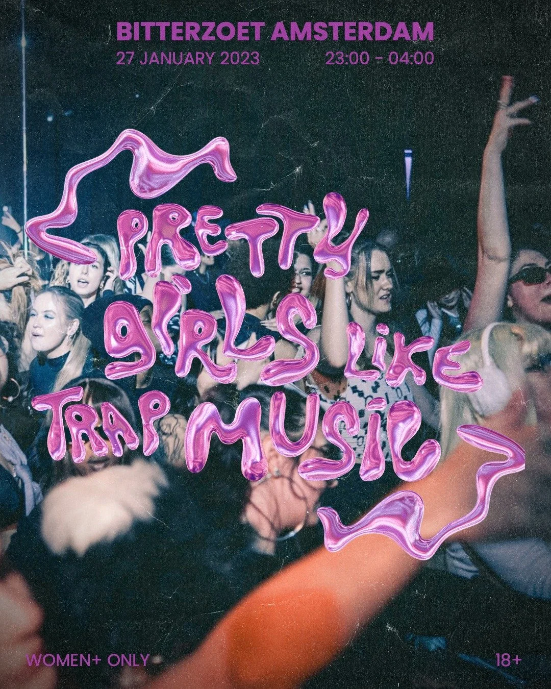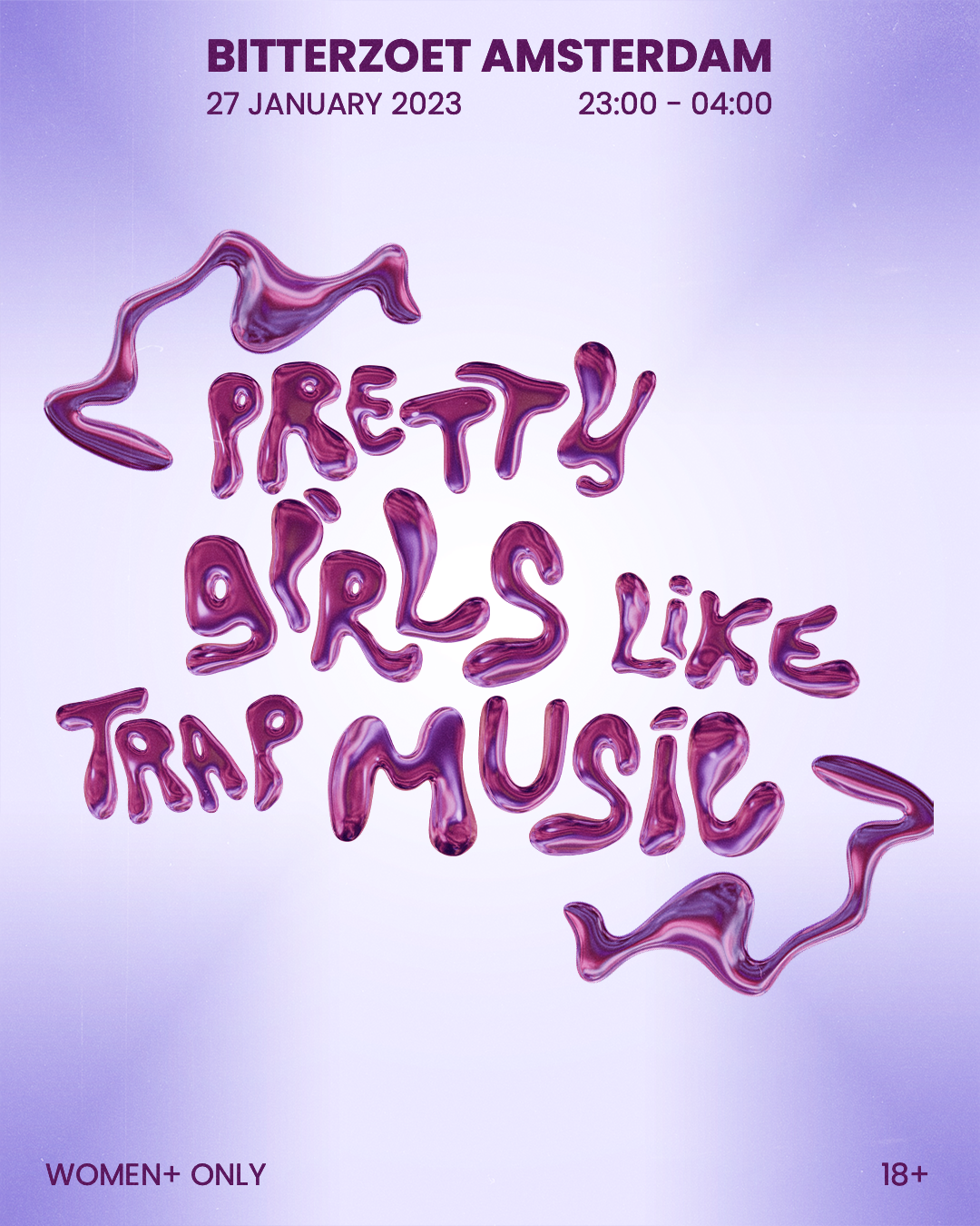 For the very first Pretty Girls Like Trap Music event at Bitterzoet, I created a simple 3D lettering effect using a metallic material.