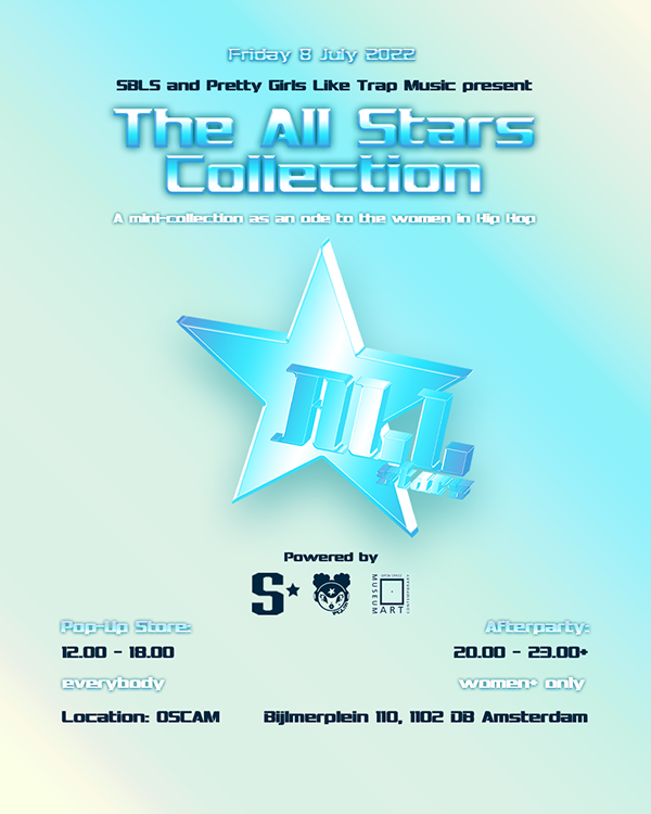 As part of a mini collection honoring women in hip hop, PG.LTM and SBLS collaborated on merchandise. I had the opportunity to design the All Stars symbol and the collaboration logo for the collection.